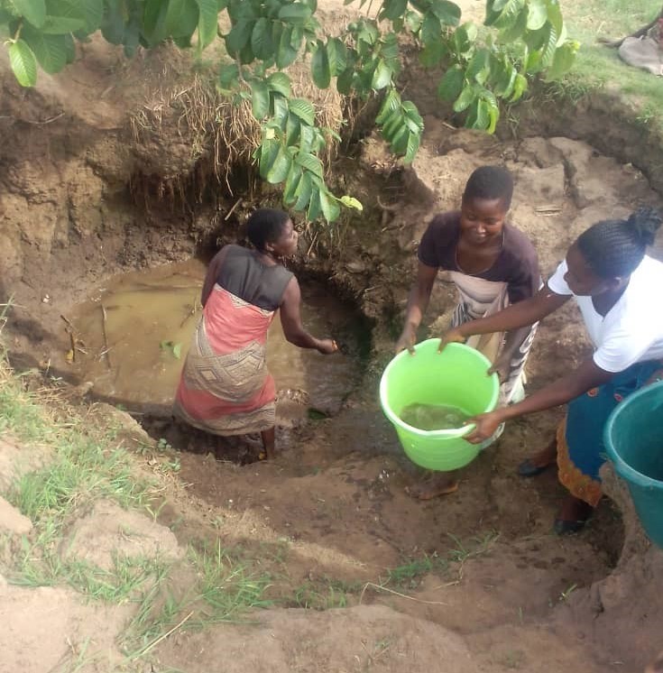 Presently the main source of water for domestic use are open unprotected shallow wells and streams which become dry during the dry season. Livestock also drink from the same water supply sources. The community has never been provided with a protected water source. The existing sources become contaminated during rainy season due to water runoff. As the season becomes dry, women and girls travel for long distances of 3-4 km to get water from the Bua river which is perennial. Sometimes people are attacked by crocodiles as they draw water from the river.